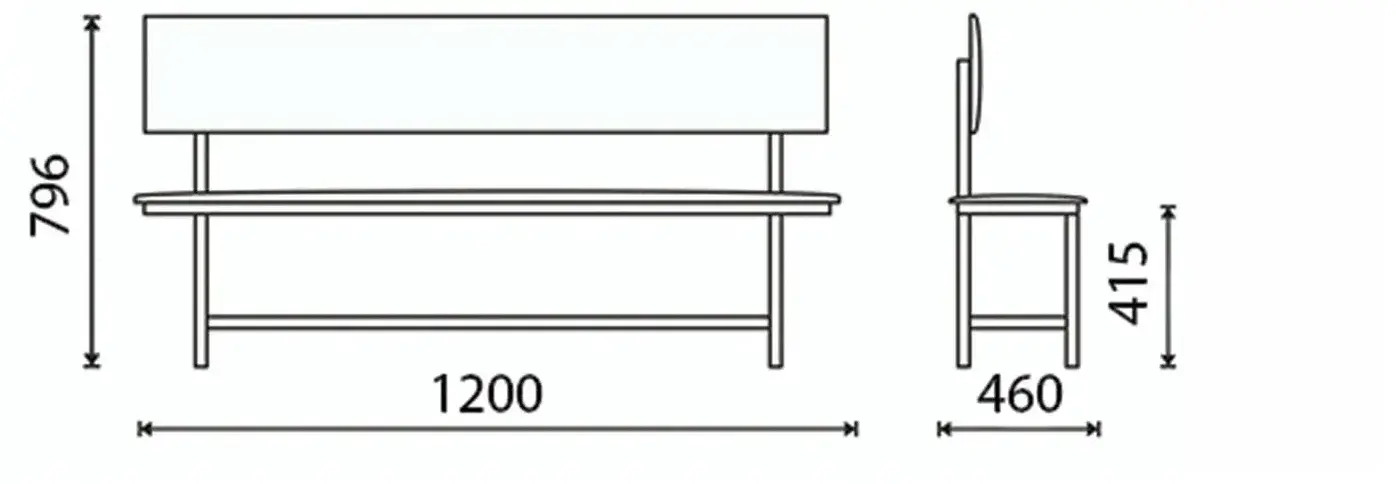 - Размеры: длина 120 см, глубина 47 см, высота 79.6 см
