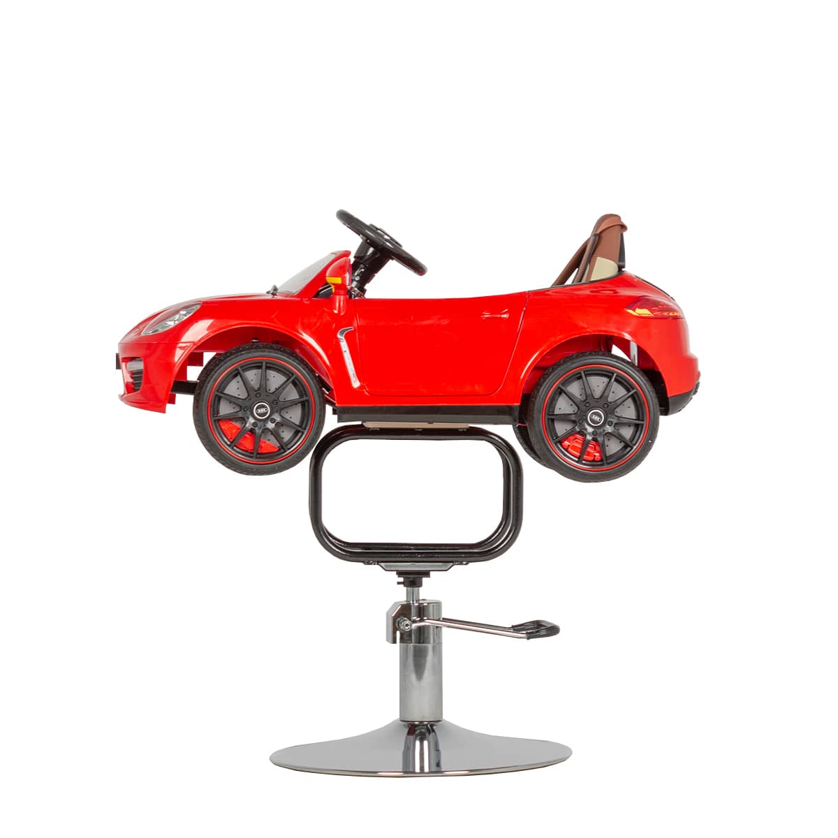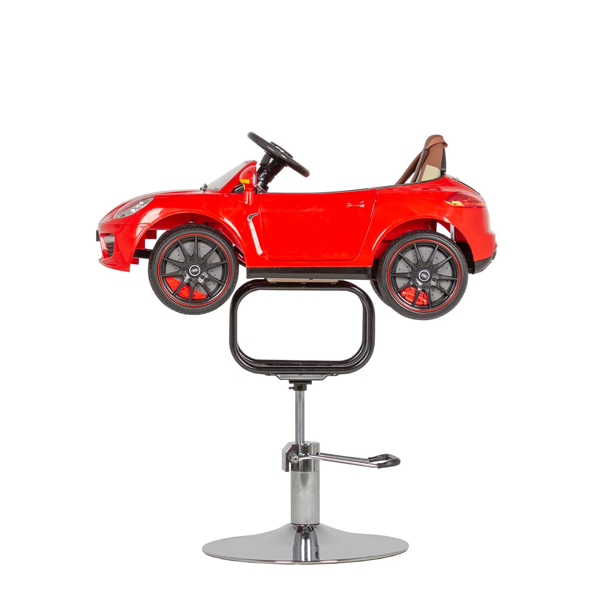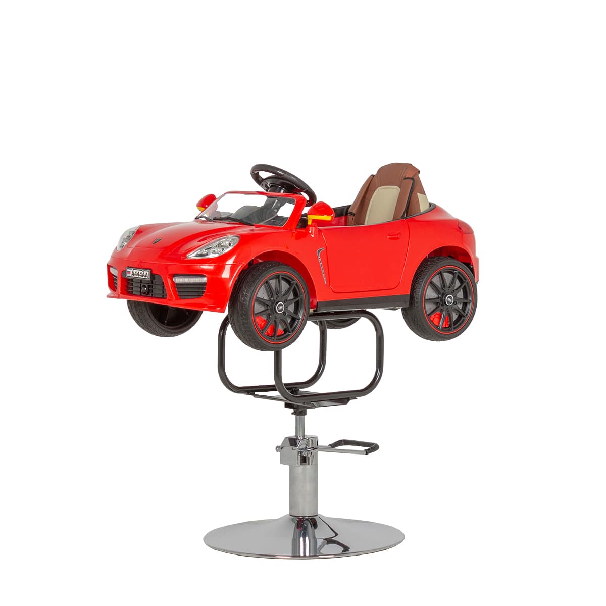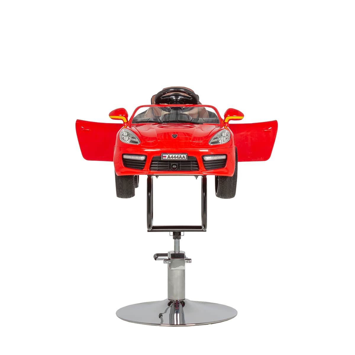 - Машинка: оснащена удобным сиденьем с удерживающим ремнем, рулем, приборной панелью, фарами и задними фонарями, магнитолой и колонками, колесами.