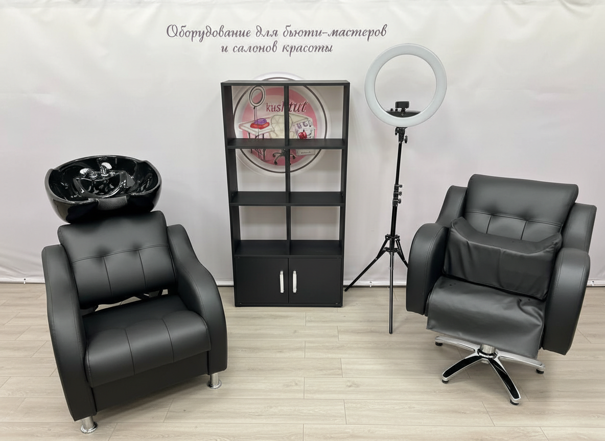 1. Парикмахерское кресло-мойка с глубокой раковиной. Экокожа премиум-класса MARVEL BLACK). Длина 90 см, ширина 70 см, высота 96 см. Размеры раковины: длина 56 см, ширина 55 см, глубина 24 см, шейный вырез 17 см.