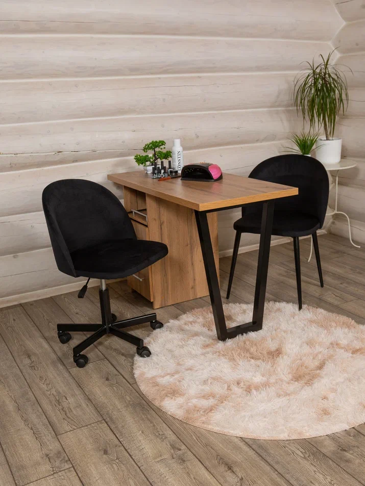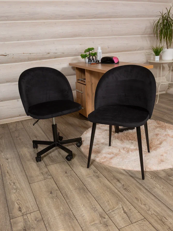- Материал: экокожа/велюр, ноги-металл, пятилучие (черная, серебро).