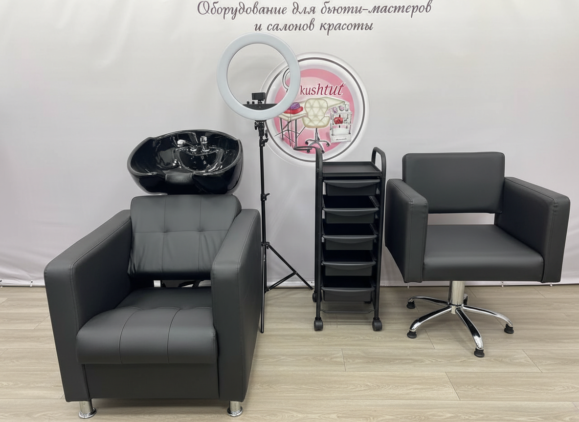 1. Парикмахерское кресло-мойка Квадрат. Обивка: Искусственная кожа, наполнитель - поролон. Глубокая раковина. Внешние размеры: высота 67 см, ширина 68 см, глубина 78 см. Размеры кресла: высота спинки 48 см, глубина сиденья 47 см.
