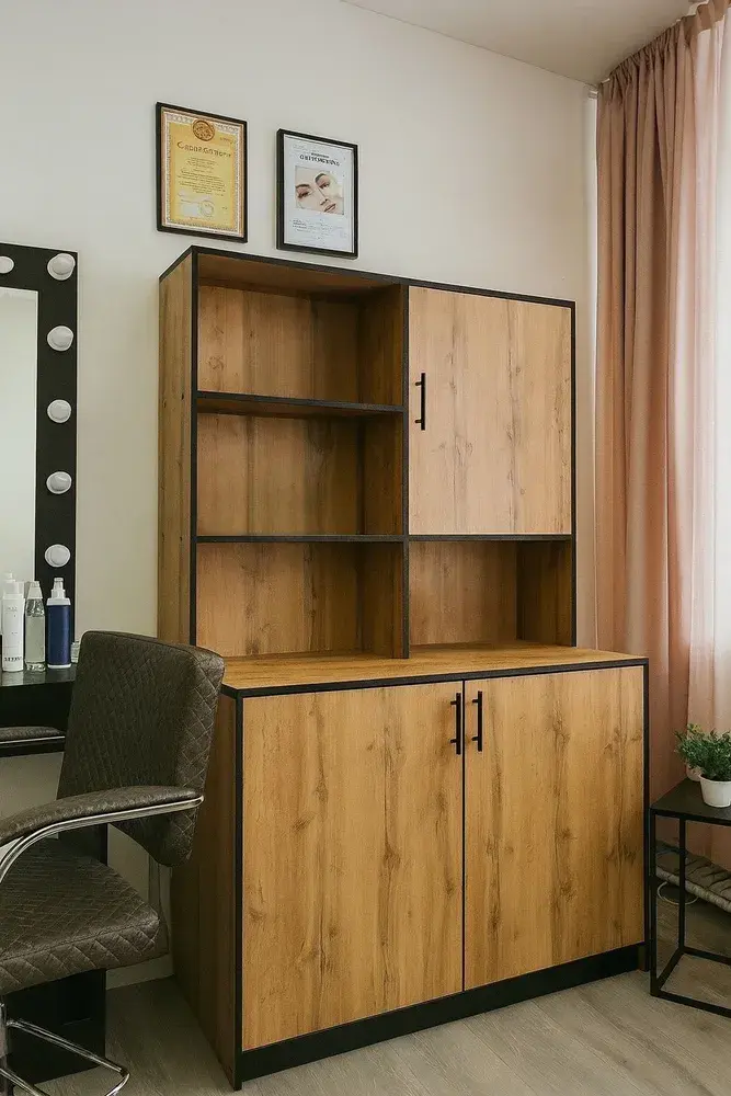 - Размеры полок: верх - высота 31,7 см, низ - высота 43,6 см, ширина 57,6 см