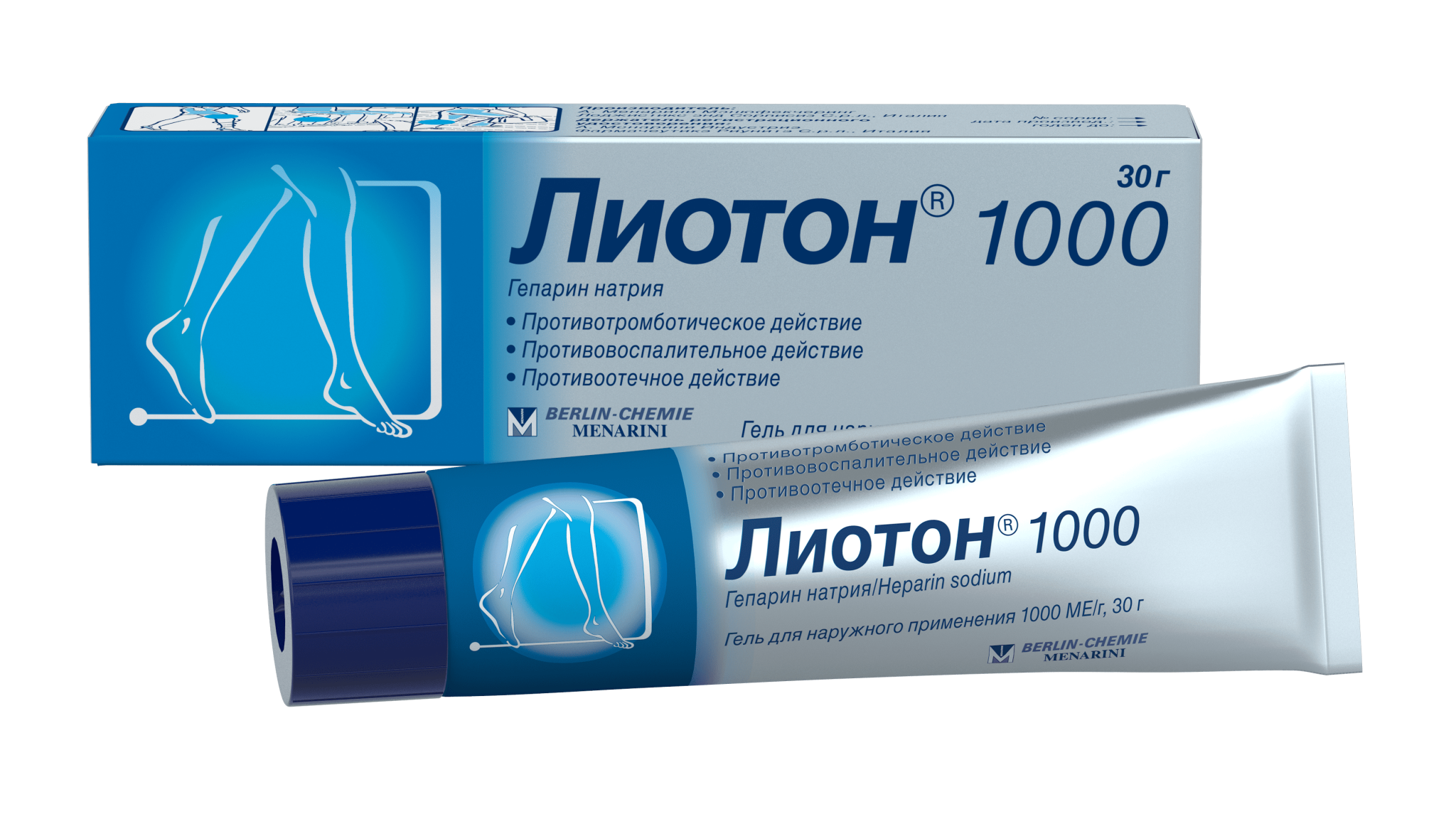 На 100 г геля: Действующее вещество: гепарин натрия - 100 000 МЕ