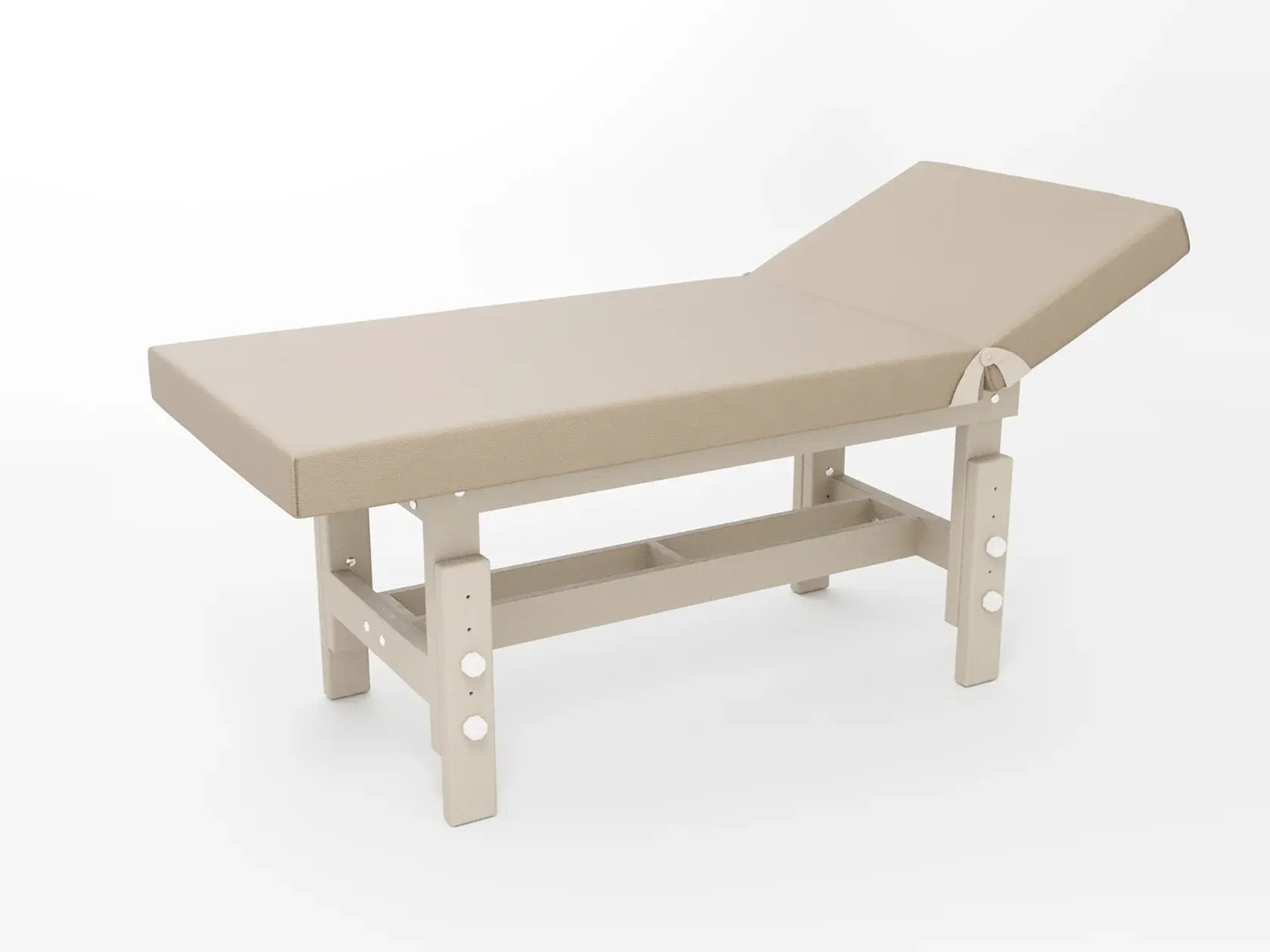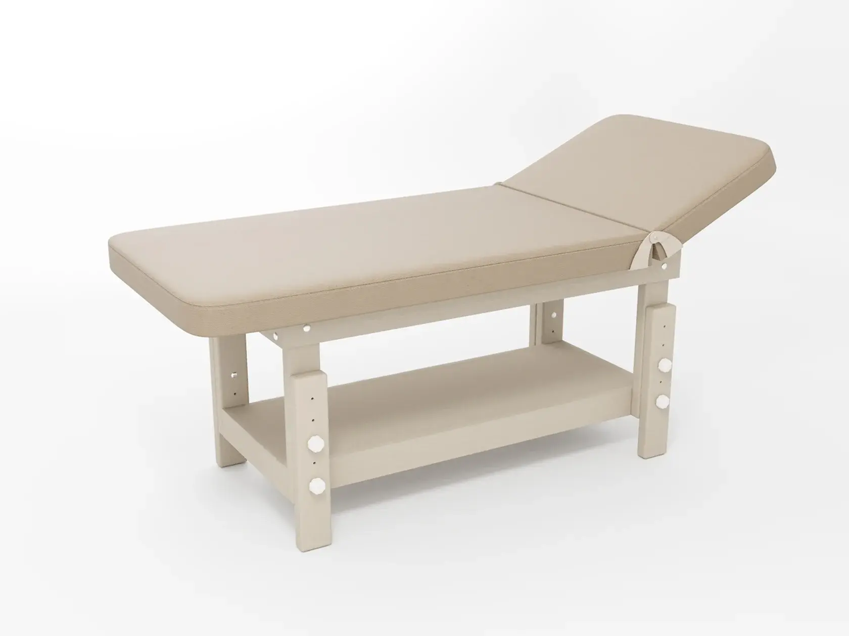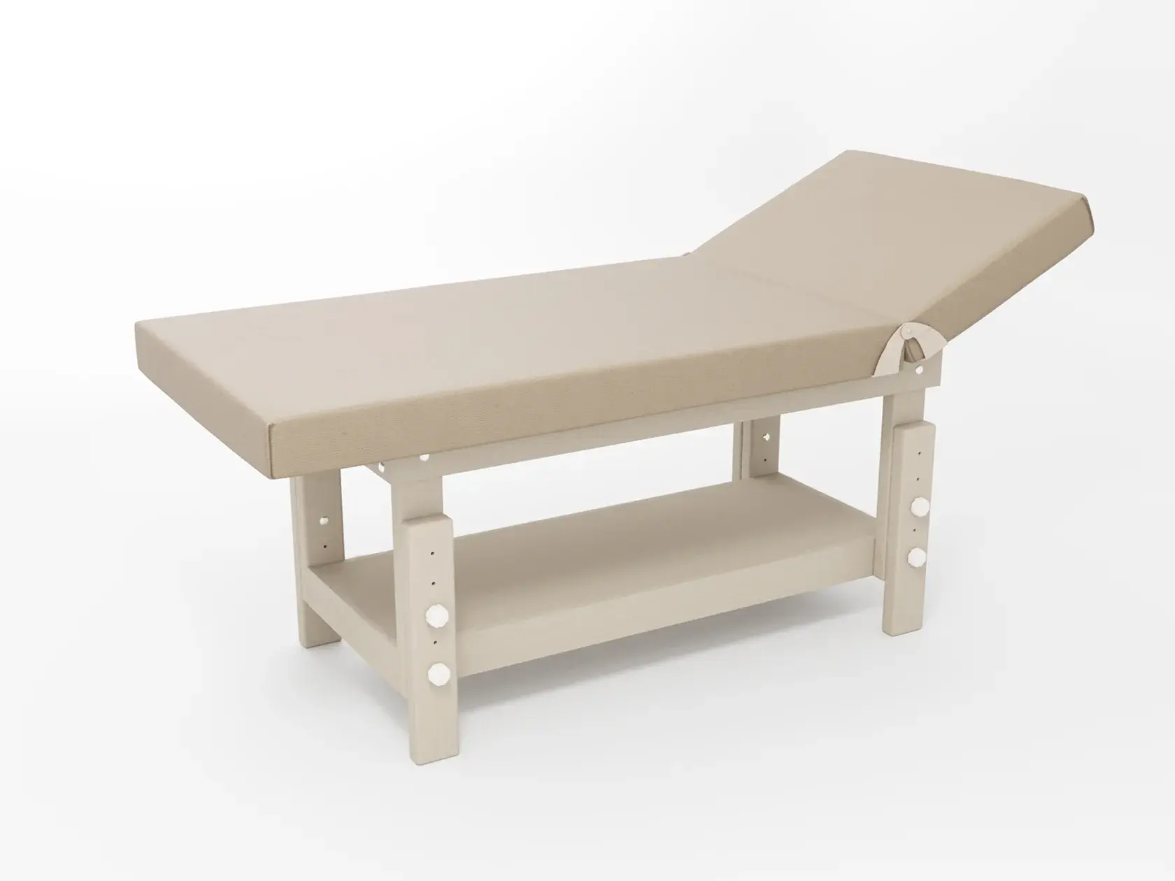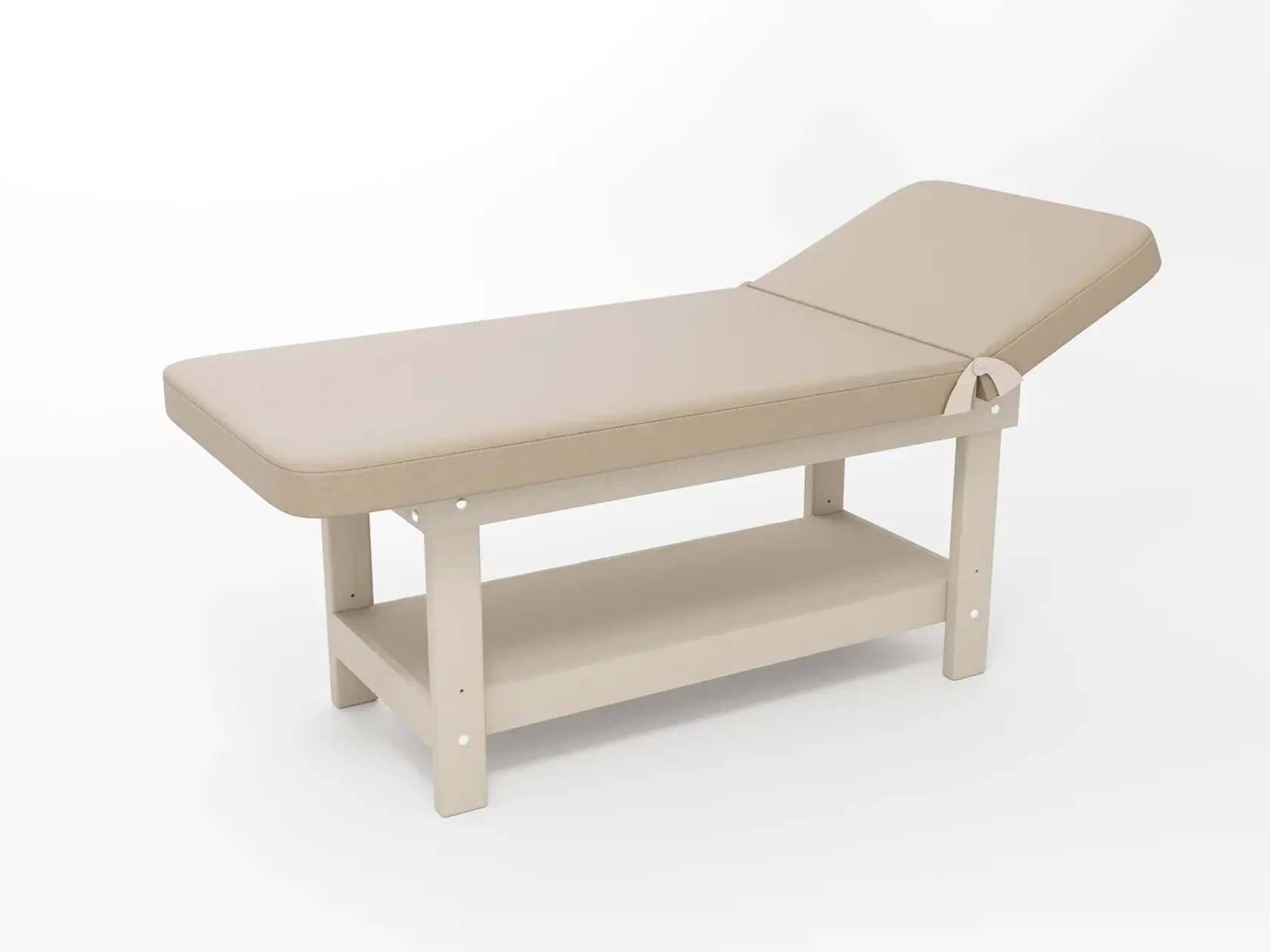 Стандарт / с подъемной спинкой / прямые / без регулировки (индивидуальная высота кушетки) / широкая полочка сплошная / с люверсом и заглушкой