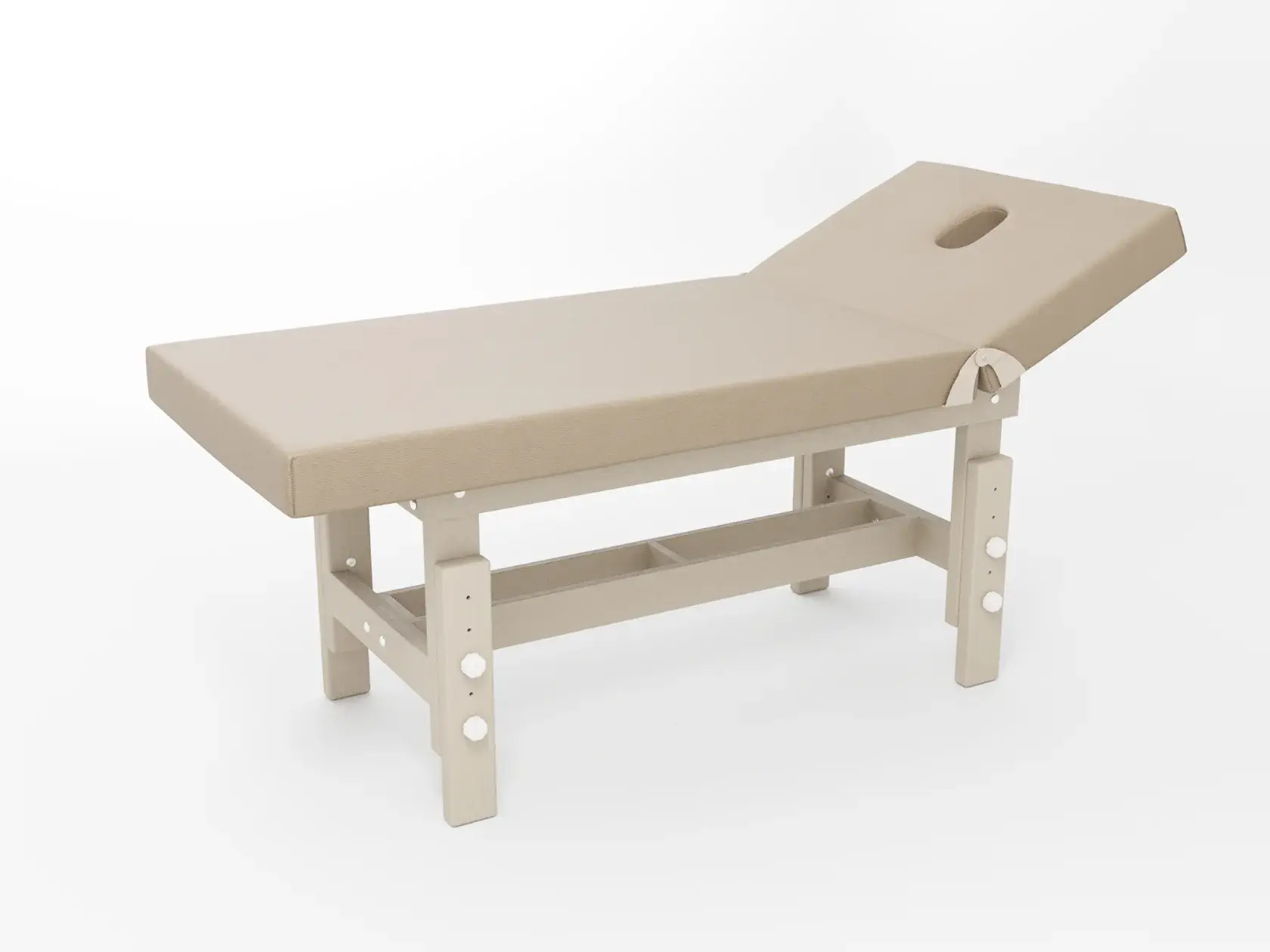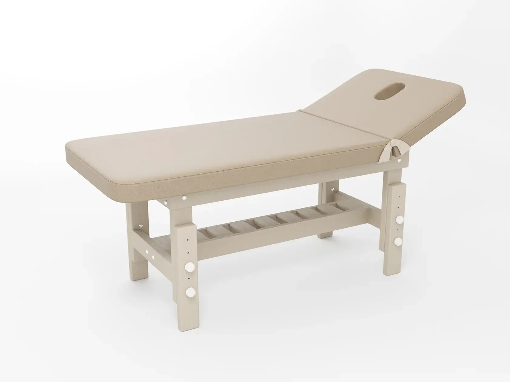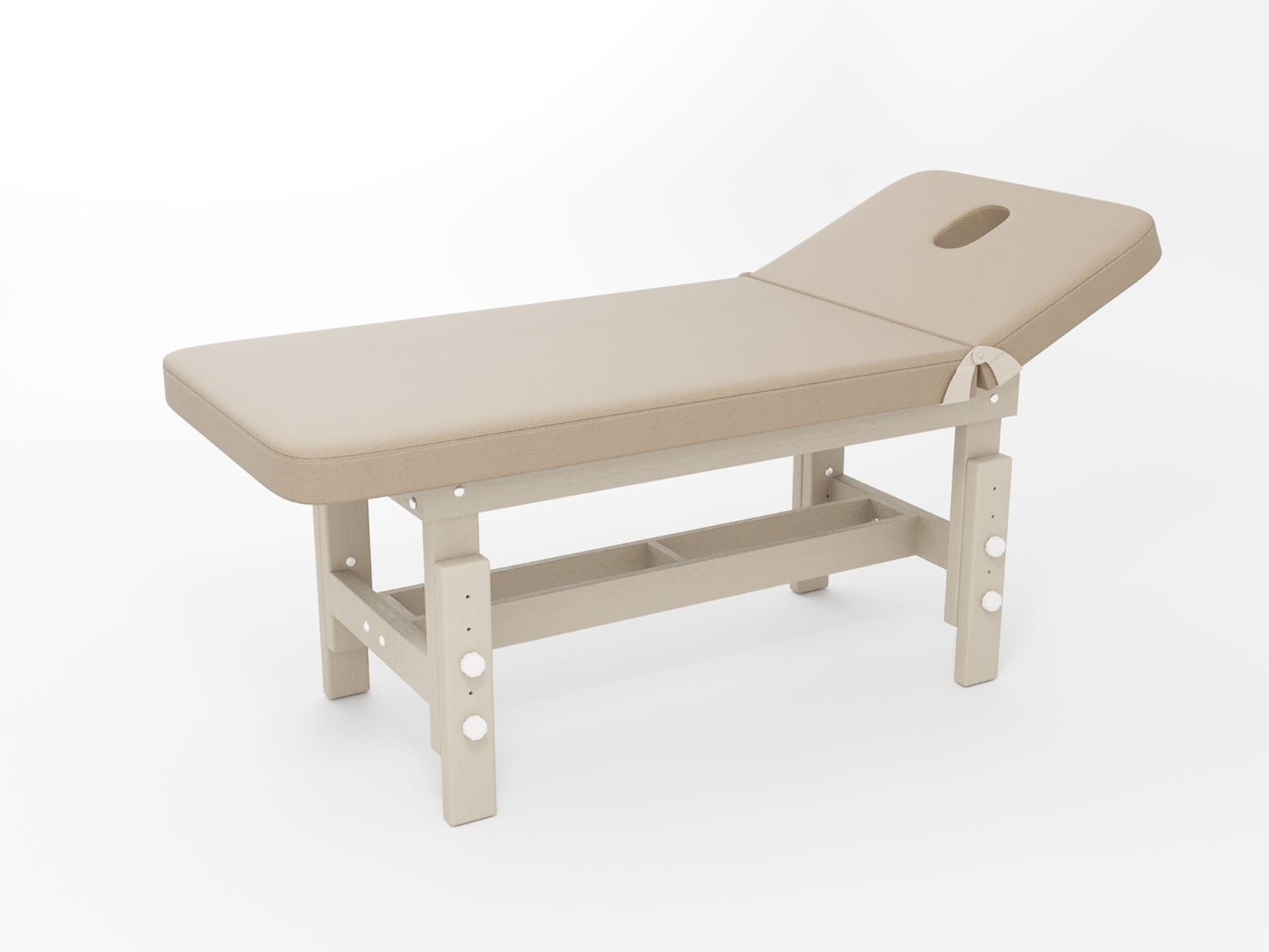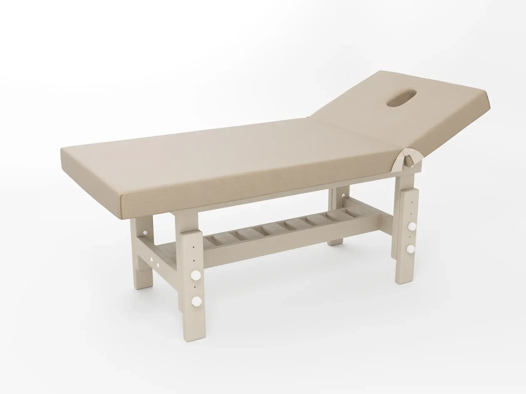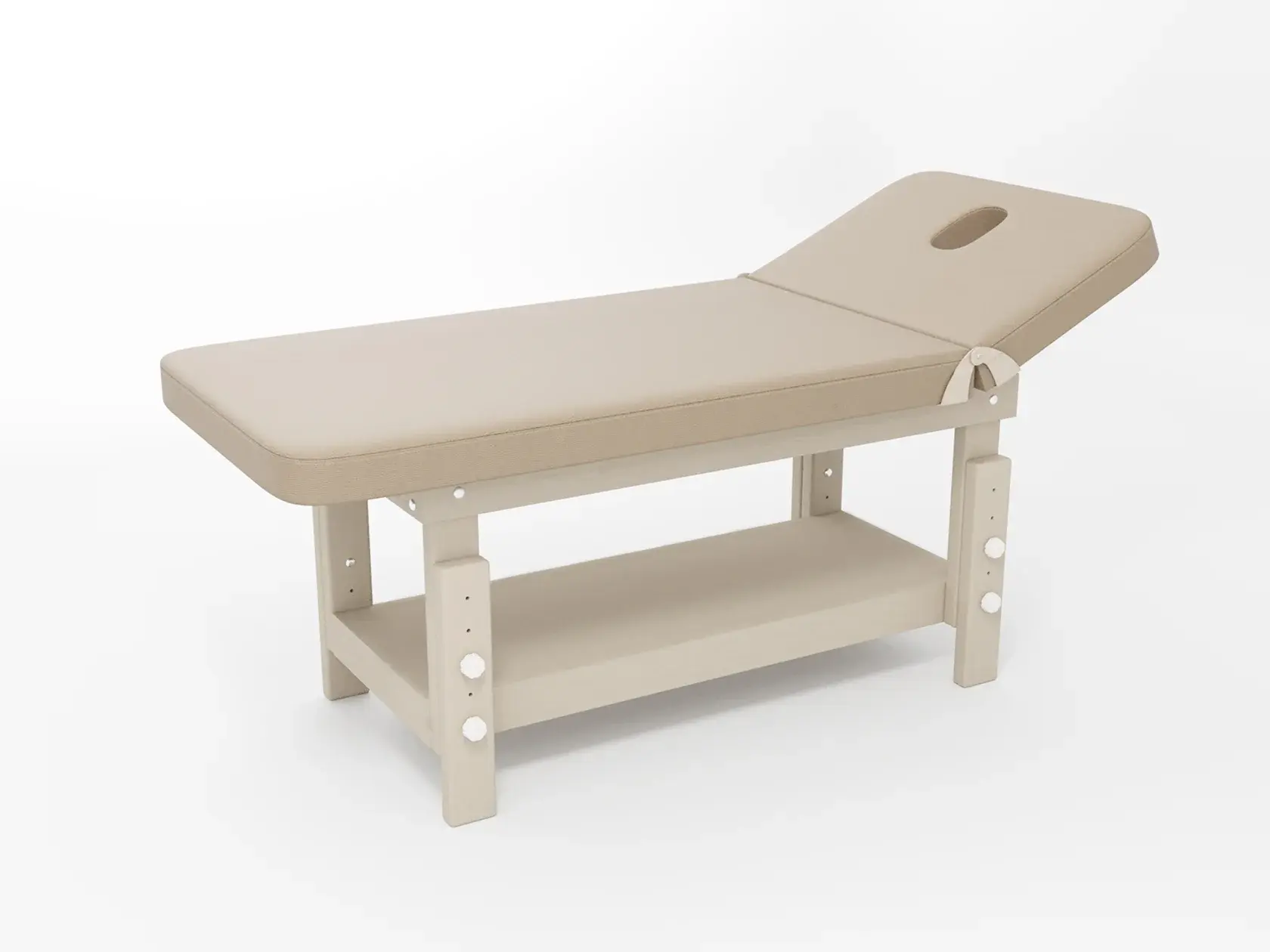 Стандарт / с подъемной спинкой / прямые / без регулировки (индивидуальная высота кушетки) / широкая полочка сплошная / с люверсом и заглушкой