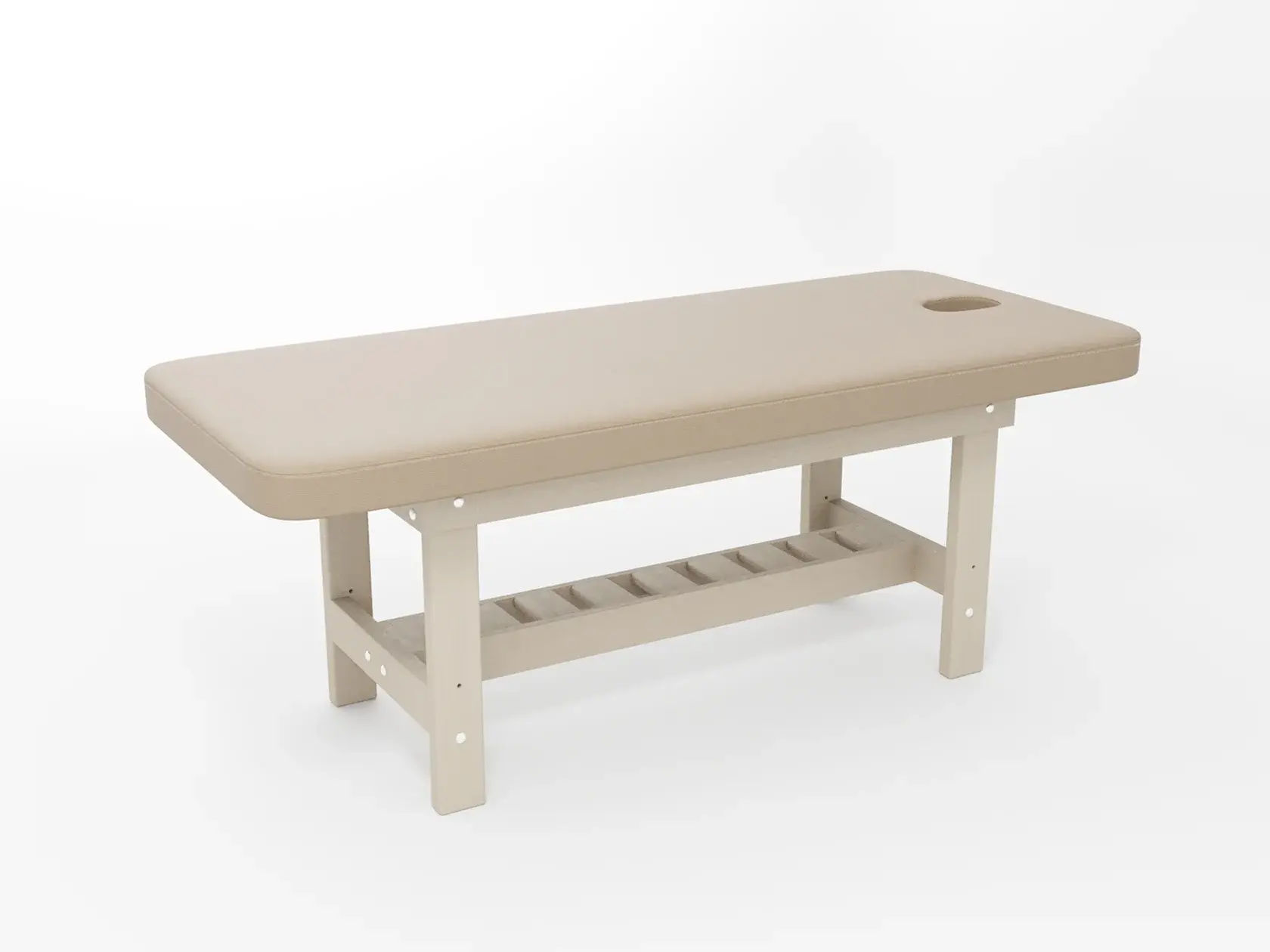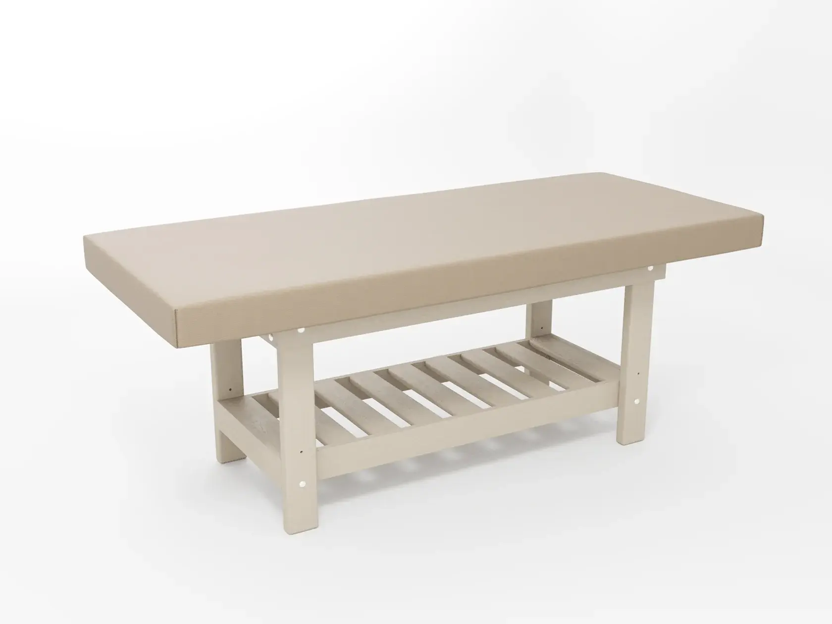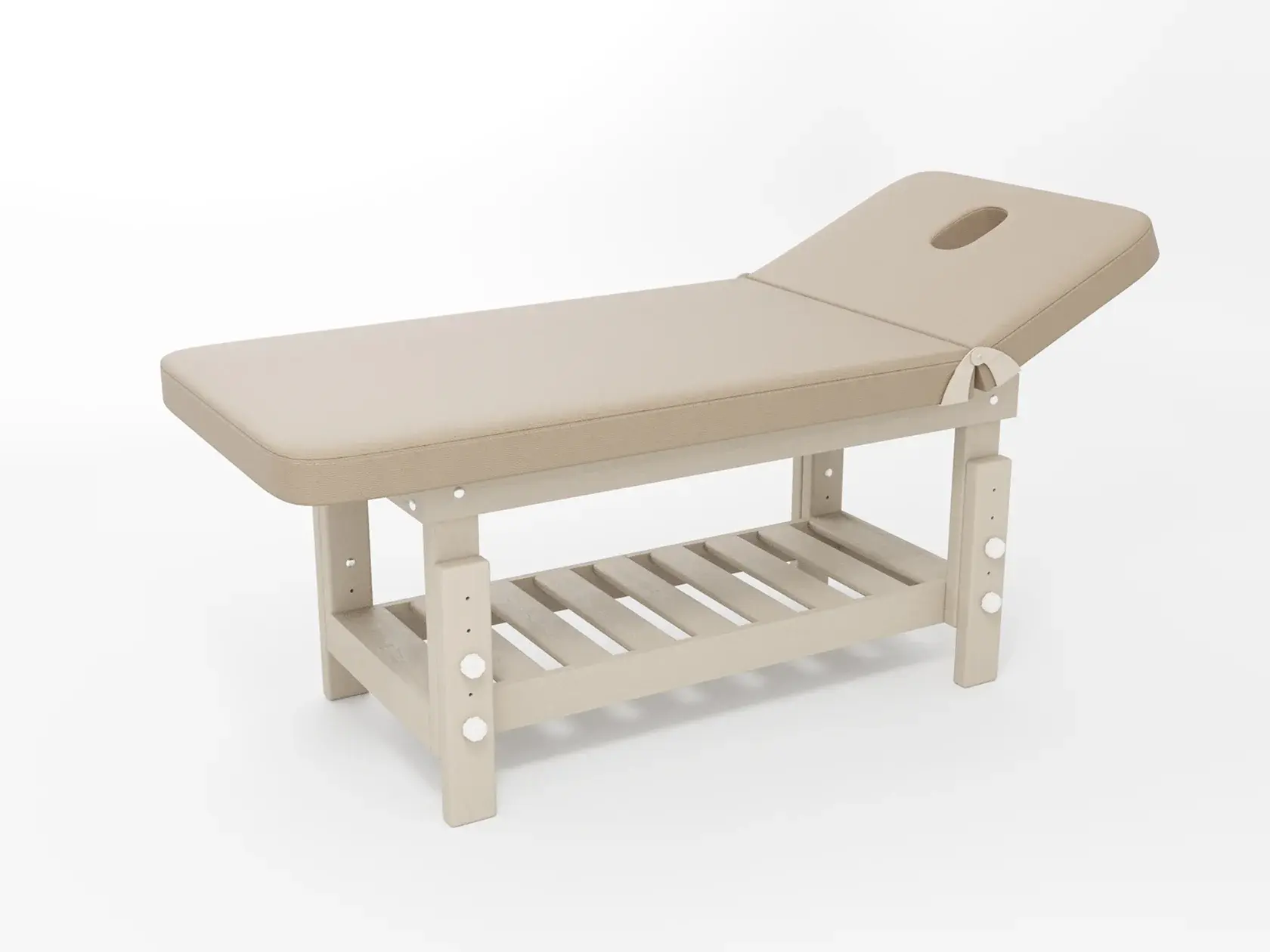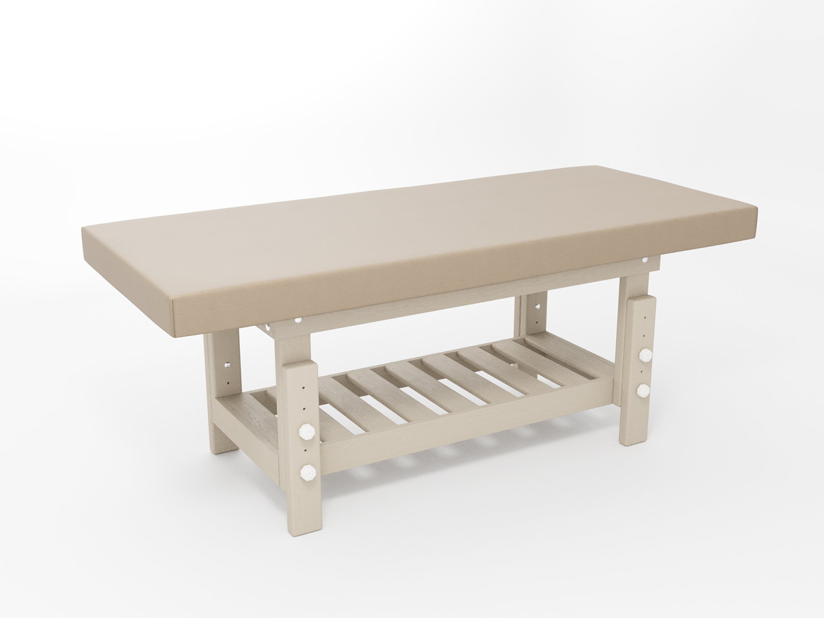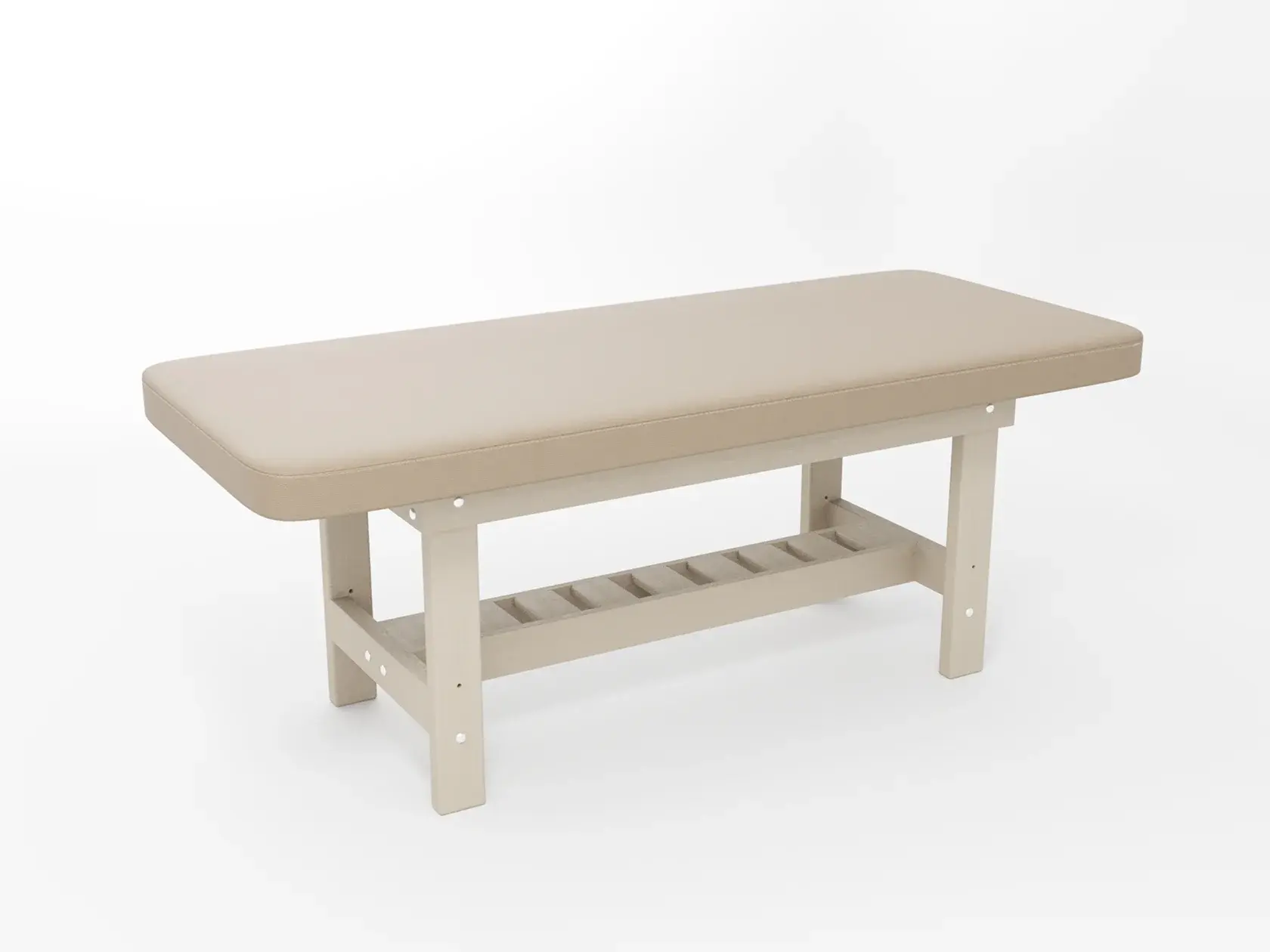 Премиум / сплошная (без спинки) / закругленные / без регулировки (индивидуальная высота кушетки) / широкая полочка-решетка / с люверсом и заглушкой