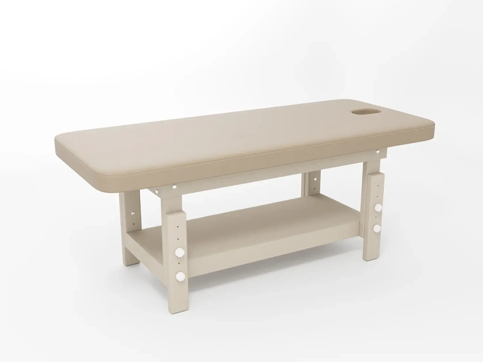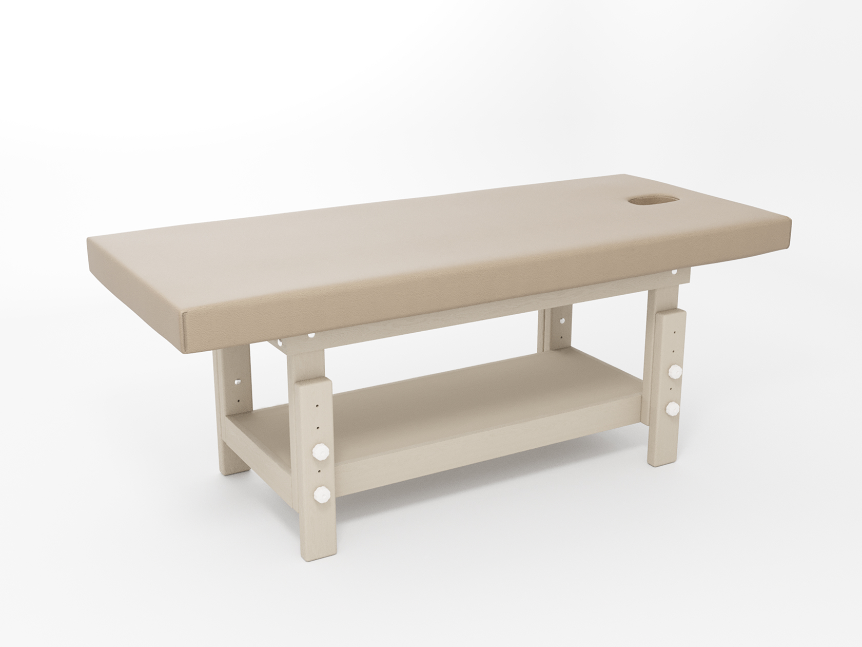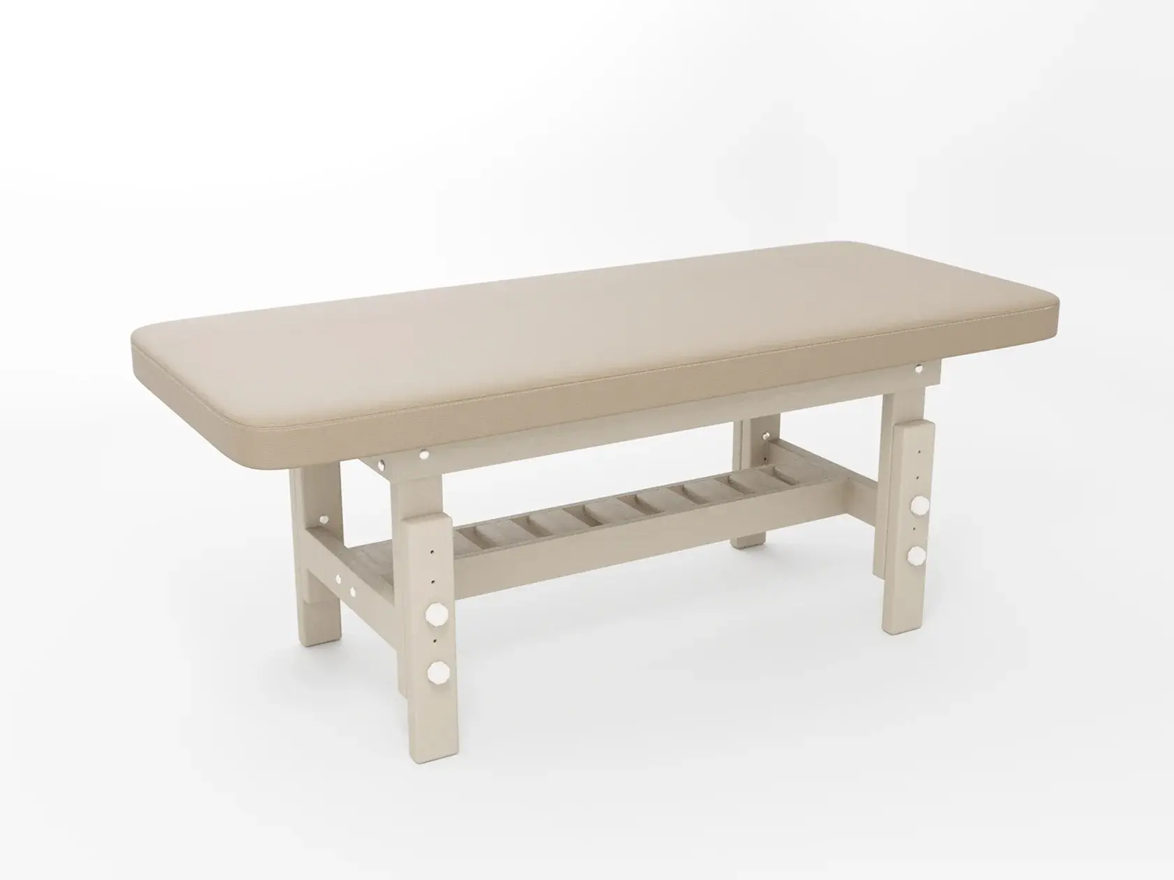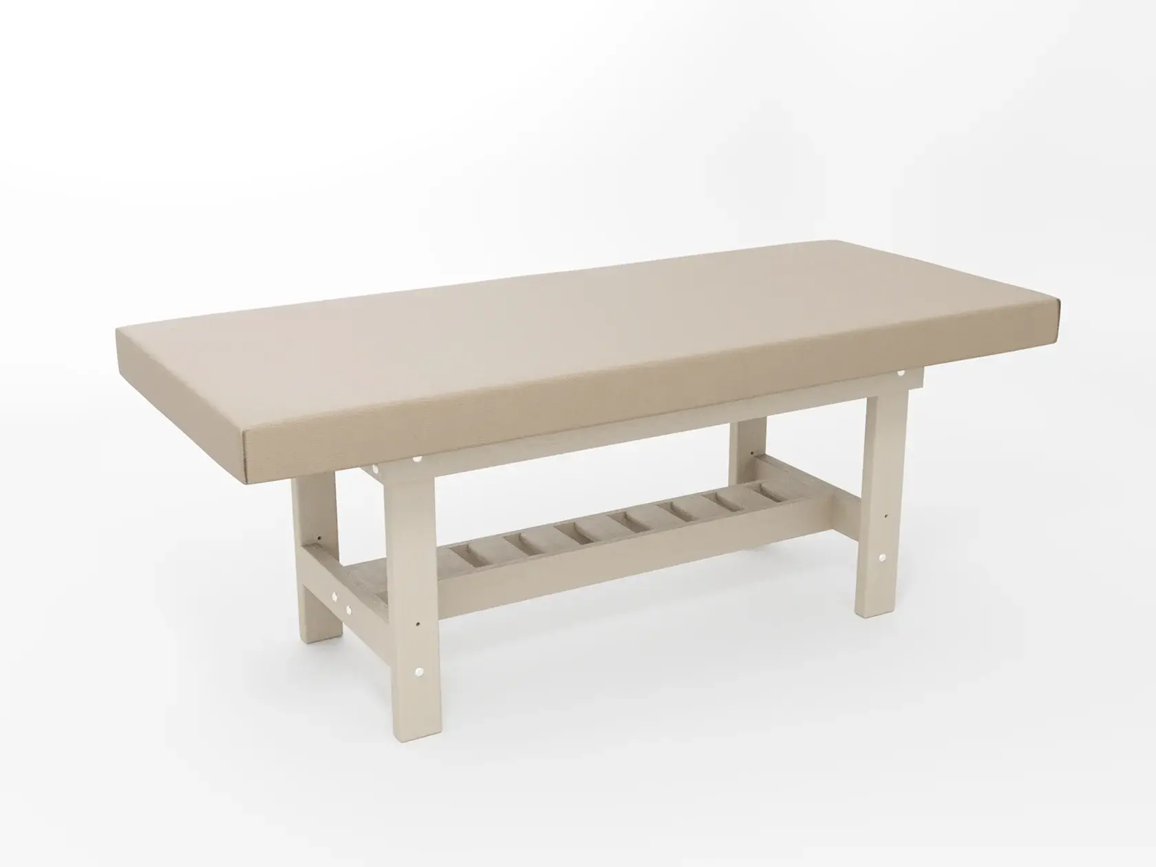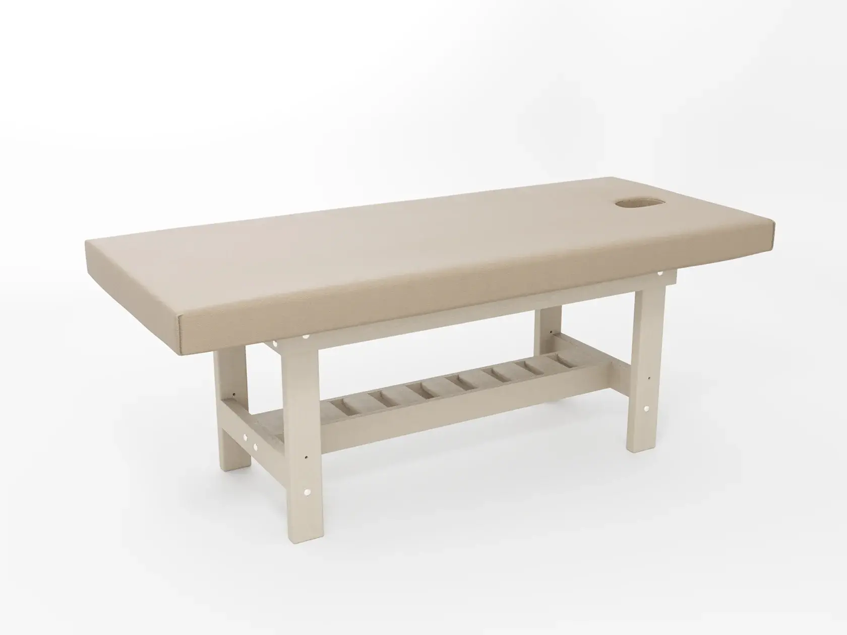 Премиум / сплошная (без спинки) / закругленные / без регулировки (индивидуальная высота кушетки) / широкая полочка-решетка / с люверсом и заглушкой