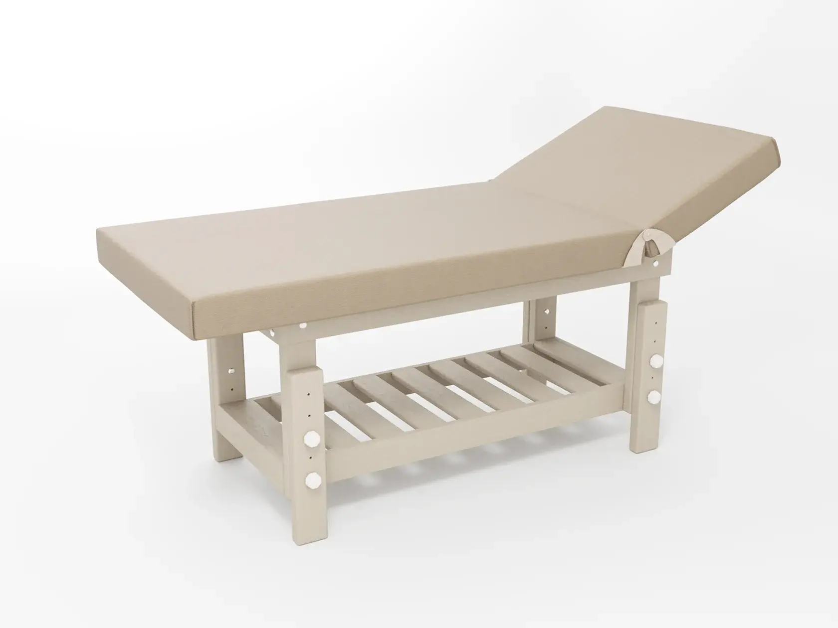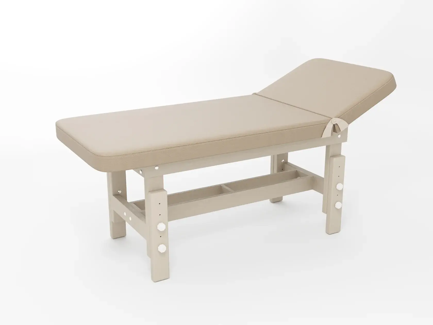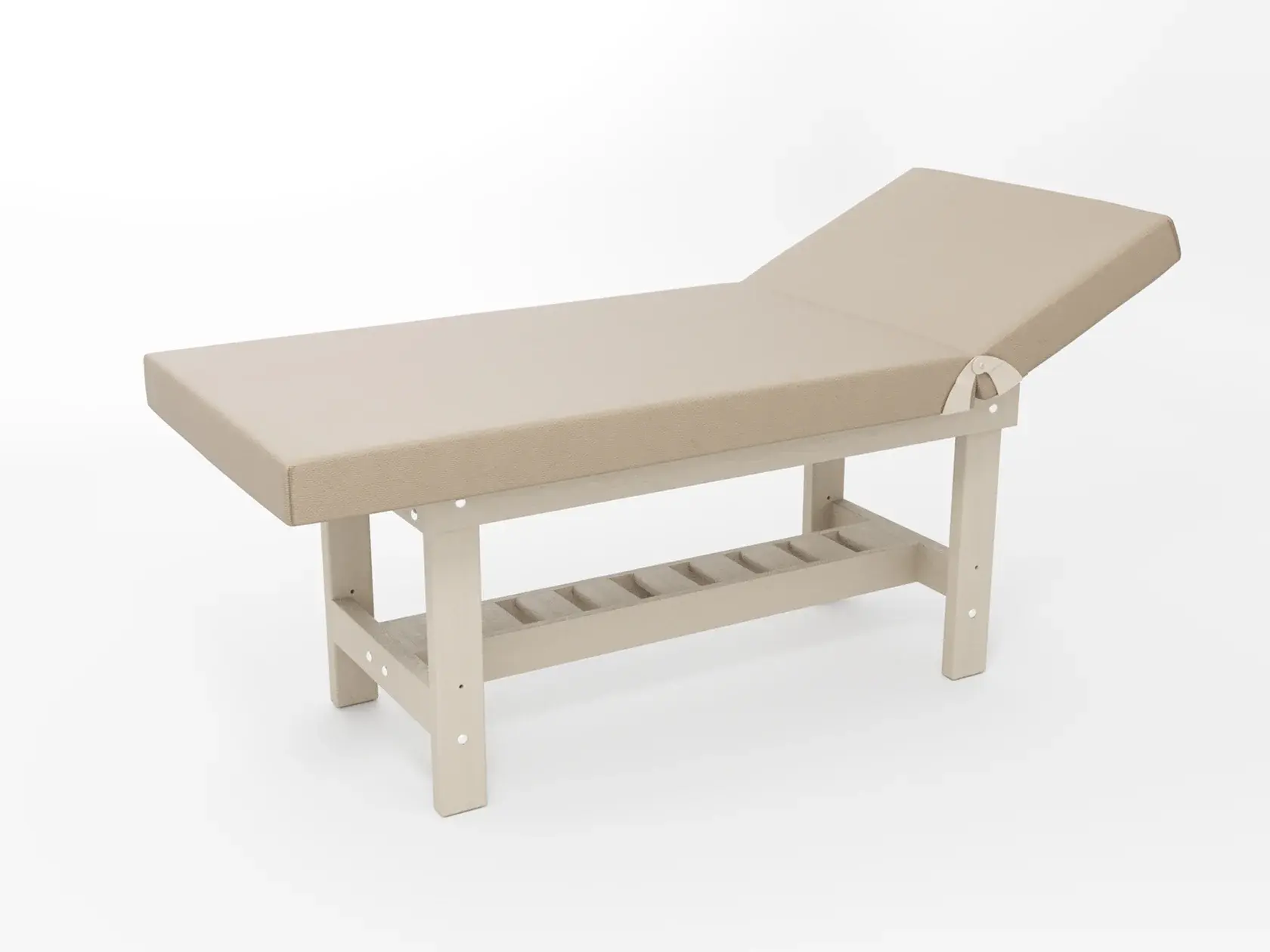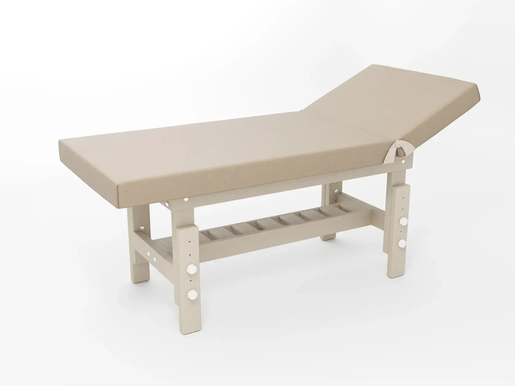 Стандарт / с подъемной спинкой / прямые / без регулировки (индивидуальная высота кушетки) / широкая полочка-решетка / с люверсом и заглушкой