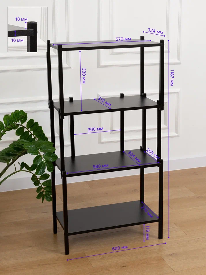 - Расстояние между полом и нижней полкой: 11,6 см.