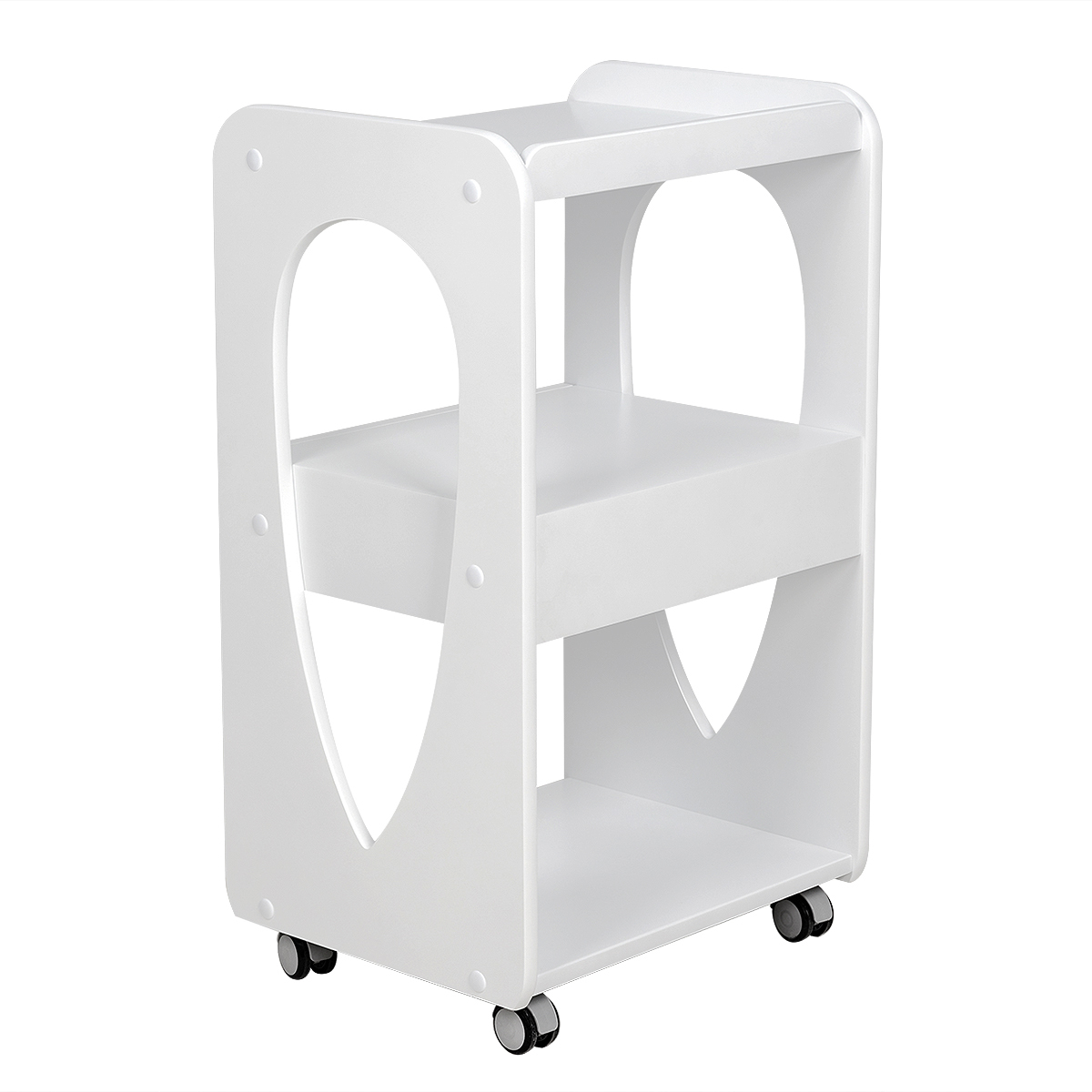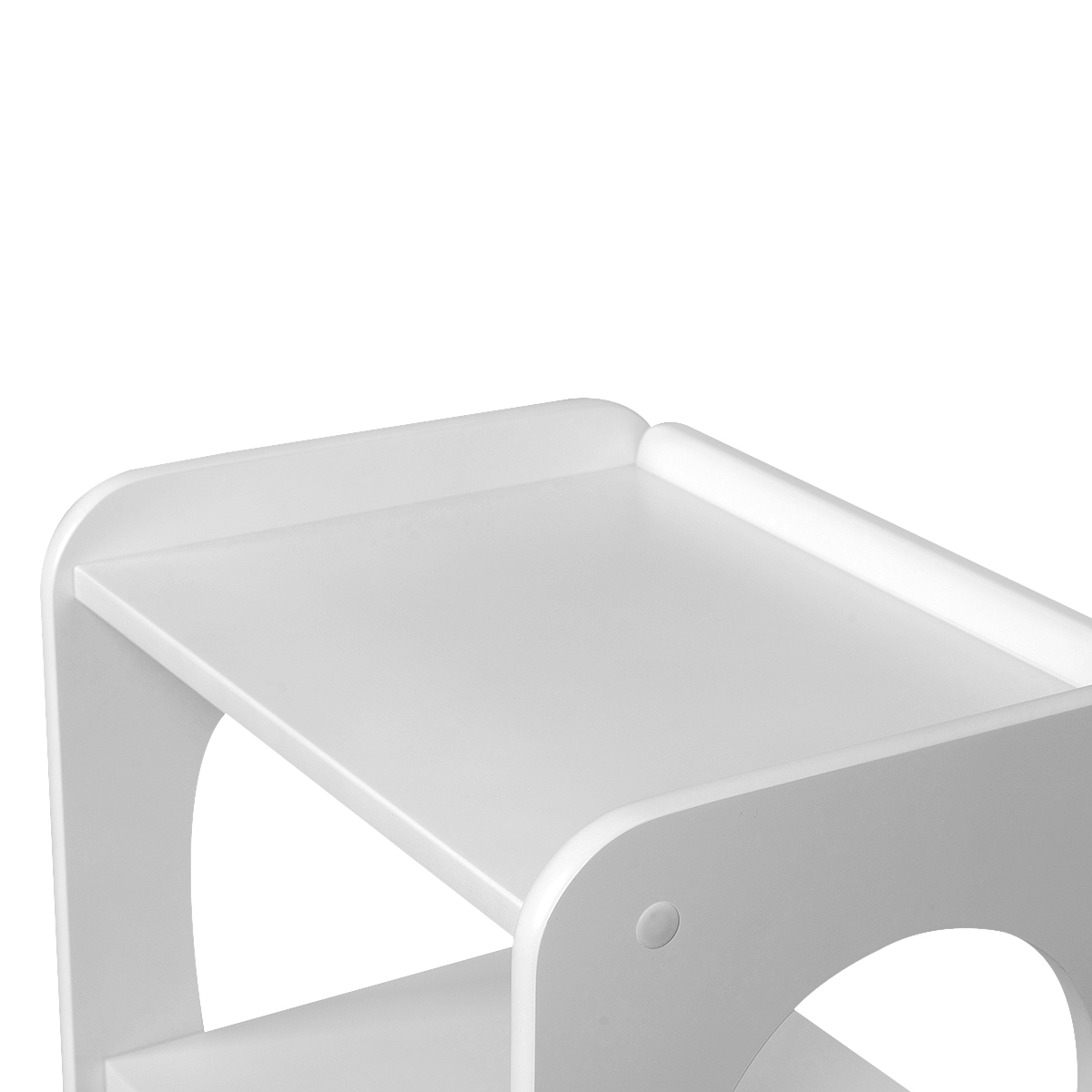 - Полки: 3 открытые полки, верхняя полка с бортиками.