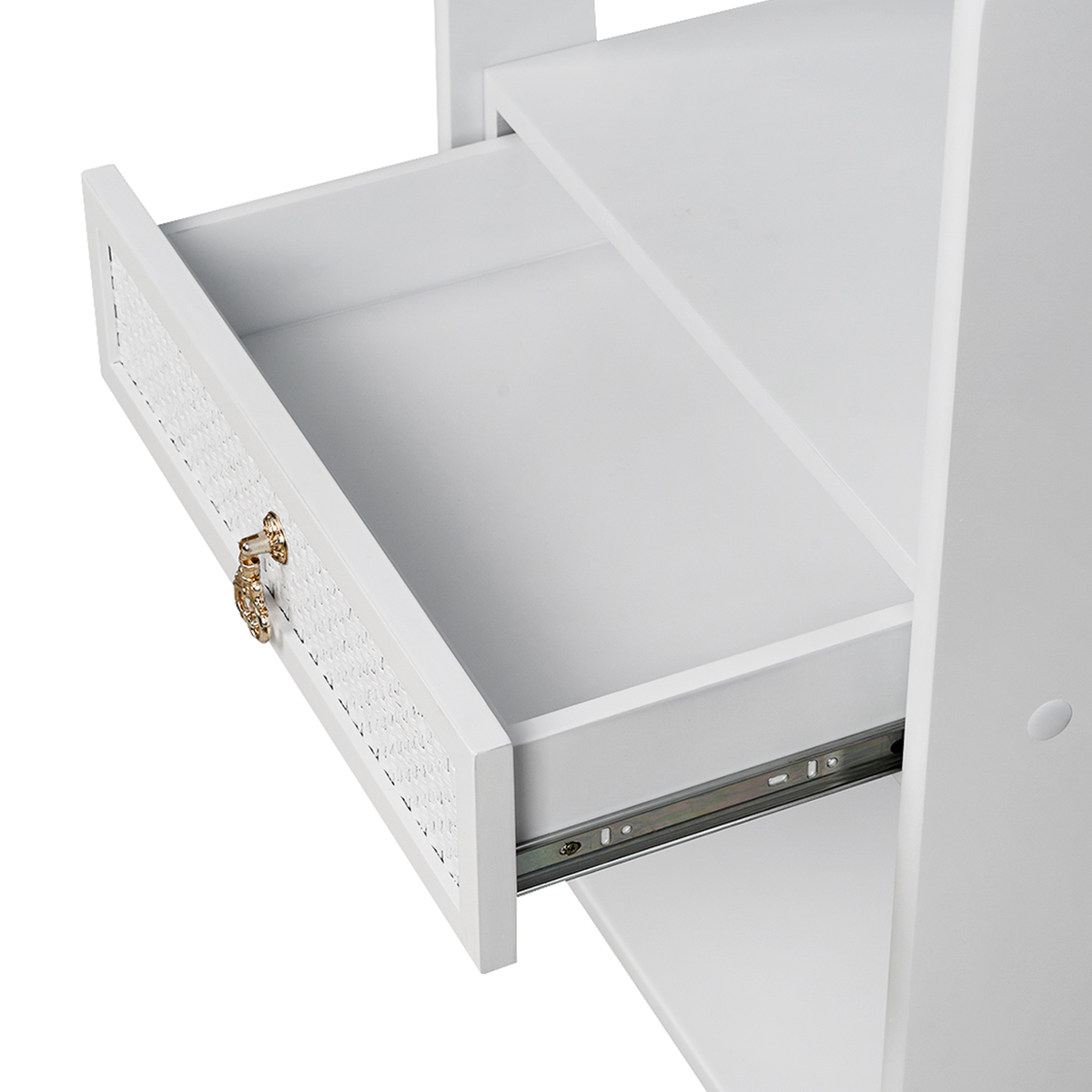 - Ящики: 1 выдвижной ящик с декорированной накладкой.
