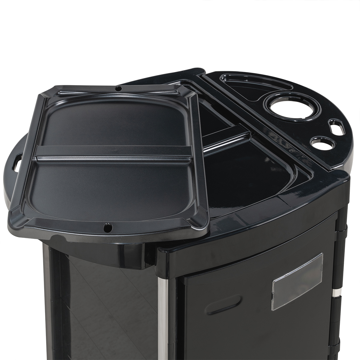 - Верхняя крышка, нижняя открытая полочка, боковые стенки: пластик.